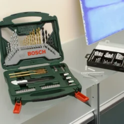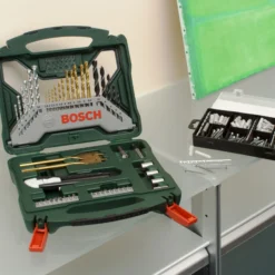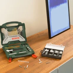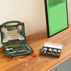 Produkteigenschaften:Für alle Bohr- und Schraubarbeiten.Ideal geeignet für nahezu alle Aufgaben.Zubehörset: Hochleistungsset für Heimwerker zum präzisen, sauberen Bohren in Metall, Mauerwerk und Holz sowie hochwertige Schrauberbits für die gängigsten Schraubentypen.Einschließlich Universal-Teppichmesser.Fixier-Set: Das Set beinhaltet optimal aufeinander abgestimmte Bohrer, Dübel und Schrauben in Standardgrößen.Für diverse Baustoffe und Einsatzbereiche.Technische Daten:Inhalt: Aktion: X-Line 50Ti plus 173-teiliges Reparaturset50-teiliges Zubehörset X-Line 50Ti:11x Metallbohrer HSS-TiN, Ø 1,5–6,5 mm6x Mauerwerkbohrer, Ø 4–10 mm5x Holzbohrer, Ø 4–10 mm2x Flachfräsbohrer, titanbeschichtet, Ø 16/22 mm18x Schrauberbits, L = 25 mm: PH 1/2/2/3, PZ 1/2/2/3, S 4/6/7, HEX 3/4/5/6, T 15/20/253x Steckschlüssel, Ø 7/8/10 mm1x Durchmesserlehre1x Messer1x Adapter für Steckschlüssel1x Universalhalter, magnetisch1x Kegelsenker173-teiliges Reparaturset:4x Mauerwerkbohrer, Ø 5/6/7/8 mm3x Schrauberbits, L = 25 mm: PZ 2/2/275x Schrauben: jeweils 25 Stück: 3,5 x 30/jeweils 20 Stück: 4,0 x 35/jeweils 20 Stück: 4,0 x 4090x Dübel: jeweils 30 Stück: Ø 5 mm/jeweils 25 Stück: Ø 6 mm/jeweils 20 Stück: Ø 7 mm/15 Stück: Ø 8 mm1x Universalhalter, magnetischVerpackung:Kunststoffkoffer mit Fenster und bedrucktem KartonAbmessung (lxbxh): 95 x 255 x 236Gewicht: 1,522 kgLieferumfang:1x Bosch Bohr- und Schrauberbit-Set + Dübel-Set, 173-teilig