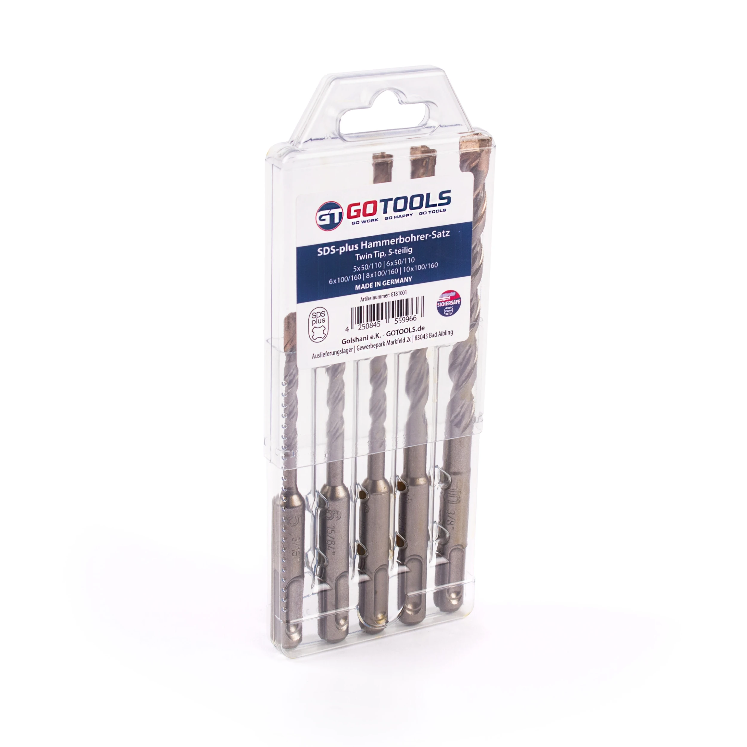 Bosch Bohr- und Meißelhammer GBH 2-26 F Produkteigenschaften:Der Allrounder für den täglichen Einsatz im SDS-plus Bohrhammer Segment mit Schnellspannbohrfutter Liefert eine Schlagenergie von 2,7 Joule und sorgt für schnelles Bohren und eine hohe Meißelabtragsleistung Zuverlässig und robust mit langer Lebensdauer aufgrund hochwertiger Bauteile Der optionale Meißelmodus und das Schnellspannbohrfutter ermöglichen den Einsatz bei einer Vielzahl von Anwendungen Der GBH 2-26 F Professional mit Schnellspannbohrfutter ist der Allrounder im Bosch SDS-plus Segment kabelgebundener Bohrhammer und damit ideal für den täglichen Einsatz. Sein starker Motor liefert eine Schlagenergie von 2,7 Joule und sorgt für schnelles Bohren und eine hohe Meißelabtragsleistung. Aufgrund seiner hochwertigen Bauteile ist er zuverlässig und robust mit langer Lebensdauer. Der optionale Meißelmodus und das Schnellspannbohrfutter ermöglichen den Einsatz bei einer Vielzahl von Anwendungen. Dieses Elektrowerkzeug eignet sich zum Bohren und Meißeln in Beton, Mauerwerk, Holz und Metall. Es ist kompatibel mit verschiedenen Systemzubehören zur Staubabsaugung. Ferner verfügt der GBH 2-26 F Professional über Funktionen wie Rechts-/Links-Lauf, Überlastkupplung, variable Drehzahl und Vario-Lock. Technische Daten: Nenneingangsleistung 830 W Schlagenergie 2,7 J Schlagzahl bei Nenndrehzahl 0 – 4.000 min-1 Nenndrehzahl 0 – 900 min-1 Gewicht 2,9 kg Werkzeugabmessungen (Breite) 83 mm Werkzeugabmessungen (Länge) 407 mm Werkzeugabmessungen (Höhe) 210 mm Werkzeugaufnahme SDS-plus Verpackungsabmessungen (Breite x Länge x Höhe) 360 x 446 x 116 mm Spannung, elektrisch 230 V Bohrbereich Bohr-Ø Beton, Hammerbohrer 4 – 26 mm Opt. Anwendungsbereich Beton, Hammerbohrer 8 – 16 mm Bohr-Ø in Beton mit Hohlbohrkronen 68 mm Max. Bohr-Ø Mauerwerk, Bohrkronen 68 mm Max. Bohrdurchmesser in Metall 13 mm Max. Bohr-Ø Holz 30 mmGOTOOLS SDS-plus Hammerbohrer-Satz Twin Tip 5-teilig – MADE IN GERMANY !!!Produkteigenschaften: Top Qualität aus Deutschland ! PGM zertifiziert !Der TwinTip SDS-plus Zweischneider ist äußerst robust und sehr kraftvoll. Der Hartmetall Bohrkopf gewährleistet hohe Standzeiten und sorgt in Kombination mit der optimierten Hartmetallschneide für besonders schnellen Bohrfortschritt – selbst in Armierung. Ein weiterer Pluspunkt ist die Wendel, die das Bohrmehl hocheffizient abtransportiert und dabei Staubverpuffungen minimiert.Technische Daten:Zweischneider für Beton und ArmierungExtrem robust mit hohen Standzeiten durch patentierten BohrkopfMit eingelassenem Hartmetallkopf für äußerste Widerstandsfähigkeit in Armierung und kraftvollen BohrfortschrittBester Bohrfortschritt durch optimierte HartmetallschneideWendel für hochwirksamen Bohrmehltransport und minimale Staubverpuffung auch in tiefen BohrlöchernGeringe Vibration für reduzierte Belastung des AnwendersBesonders einfaches Anbohren und Vermeidung von Abplatzungen auch nach vielen Bohrungen durch Doppelzentrierspitze Lieferumfang:1x Bohrhammer GBH 2-26 F 1x Zusatzhandgriff 1x Handwerkerkoffer 1x Tiefenanschlag 210 mm 1x Maschinentuch 1x Schnellwechselbohrfutter 1x Wechselfutter SDS-plus1x GOTOOLS SDS-plus Hammerbohrer-Satz Twin Tip 5-teiligInhalt des Hammerbohrsatzes:1 Stk. 5 x 50/110 mm1 Stk. 6 x 50/110 mm1 Stk. 6 x 100/160 mm1 Stk. 8 x 100/160 mm1 Stk. 10 x 100/160 mm
