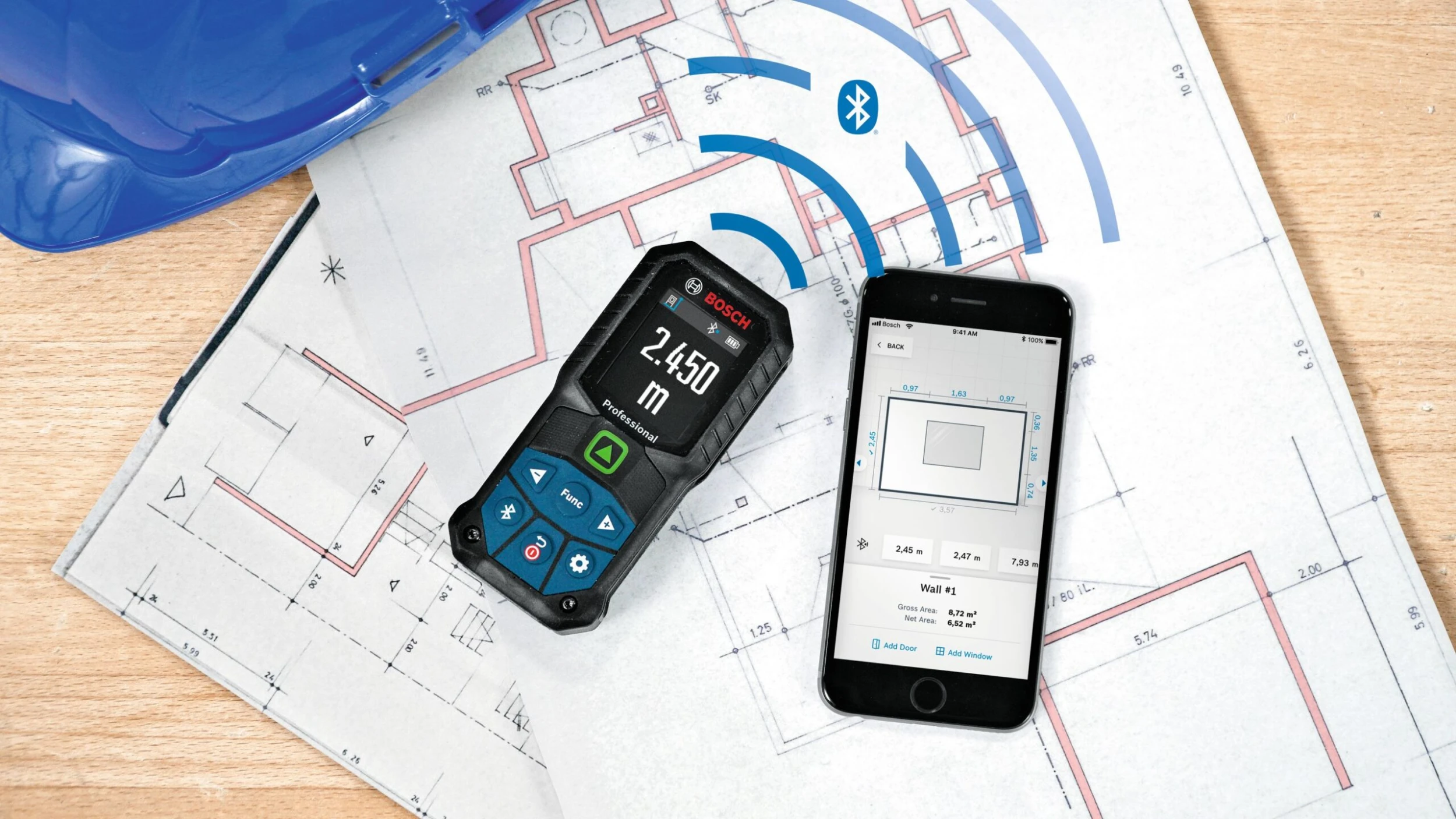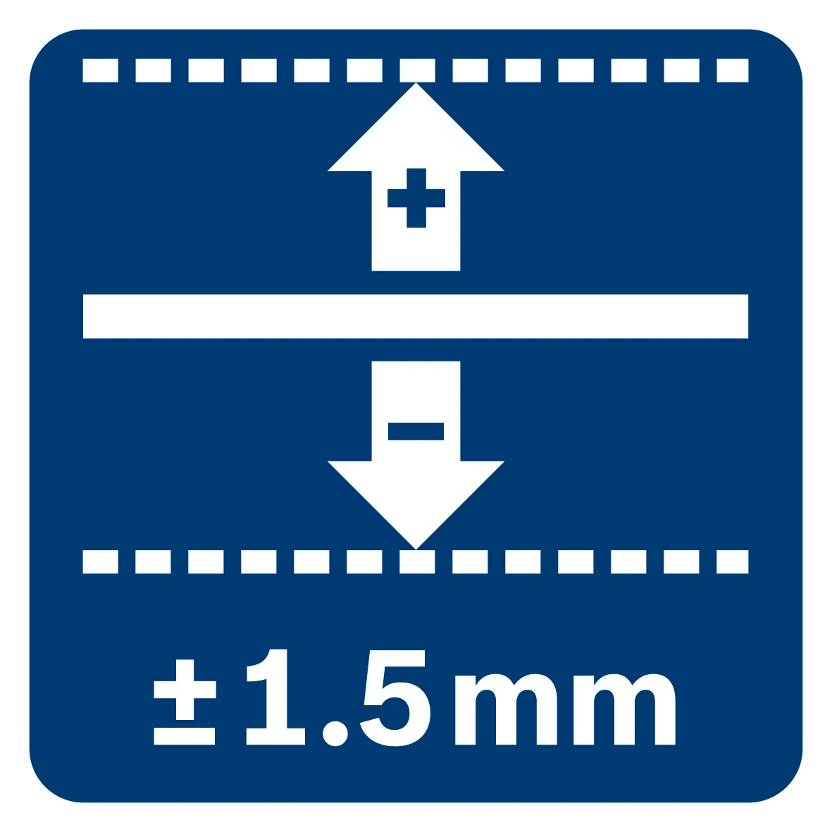 Produktbeschreibung: Laser-Entfernungsmesser GLM 50-27 CG, Der Laser-Entfernungsmesser GLM 50-27 CG Professional bietet eine hervorragende Sichtbarkeit des Laserpunkts, ein sehr langlebiges Design und eine schnelle Dokumentation Da sein grüner Laserpunkt im Vergleich zu einem roten Laserpunkt besser zu sehen ist, eignet er sich besonders zum Messen großer Distanzen bei hellen Innenraumbedingungen Dank der Kombination aus einem IP 65-zertifizierten Design und einem stoßabsorbierenden Gehäuse mit Gummiummantelung hält es Stürze aus 1,5 Meter Höhe, sogar auf harten Beton und auf rauen Baustellen aus Bluetooth®-Konnektivität und die Bosch MeasureOn App gewährleisten eine zügige Dokumentation und blitzschnelle Übertragung der Messergebnisse Dieser Laser-Entfernungsmesser eignet sich optimal zum Dokumentieren, Berechnen des Materialbedarfs, Berechnen von Räumen und Wandflächen und Positionieren von Befestigungselementen, und ist somit ideal für Architekten, Elektriker und viele andere professionelle Anwender Das Gerät gibt sowohl ein Akustik- als auch Vibrationssignal zur Bestätigung einer erfolgreichen Messung und bietet eine längere Akkulaufzeit (im Vergleich zum Vorgänger GLM 50 C Professional) Technische Daten: Laserdiode 515 nm, < 1 mW Messbereich, von 0,05 m Messbereich, bis zu 50,00 m Laserklasse 2 Messgenauigkeit, typ. ± 1,5 mm (plus nutzungsabhängige Abweichung) Messbereich Neigungsmessung 0 – 360° (4 x 90°) Messgenauigkeit (typisch) ± 0,2° Messzeit, typ. < 0,5 s Messzeit max. 4 s Stromversorgung 2 x 1,5-V-LR6 (AA) Abschaltautomatik 5 min Gewicht, ca. 0,2 kg Anzahl Speicherwerte 30 Staub- und Spritzwasserschutz IP 65 Stativ-Gewinde 1/4" Stoßschutz bis 1,5 m Datenübertragung Bluetooth™ 4.2 Low Energy Integrierte Zieloptik nein Integrierte Neigungsmessung ja Indirekte Längenmessung ja Indirekte Höhenmessung ja Wandflächenfunktion ja Timerfunktion nein Min/Max-Messung ja Maßeinheiten m/cm/mm/Ft/Inch/Ft-Inch Messbereich 0,05 – 50,00 m Lieferumfang: 1x Bosch Laser-Entfernungsmesser GLM 50-27 CG 1x Schutztasche 1x Trageschlaufe 1x BA 3.7V 1.0Ah A und USB-C™-Kabel (1 608 M00 C43)