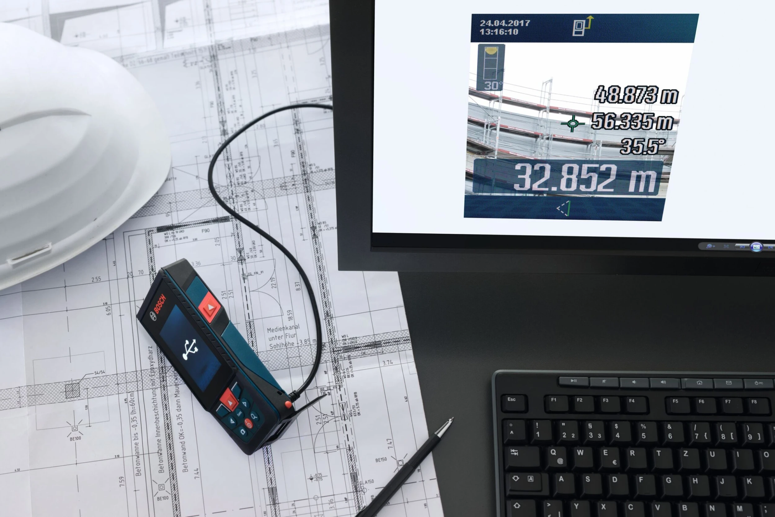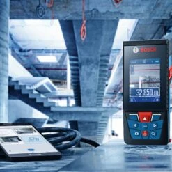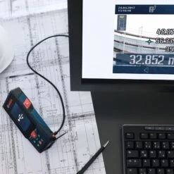 Produkteigenschaften: Kamera als Bildsucher + Zoom zum einfachen Zielen und den optimalen Fokus Speicher für Bilder und Messungen + Übertragung auf den PCl Verbesserter Display für eine bessere Lesbarkeit (IPS & optische Bindung) Robustes Gehäuse & Schutzglas (IP 54 + Dragontrail Schutzglas, ähnlich Gorilla Glas) Timer Funktion & Fernsteuerung (via Measuring Master App) Seitlicher Auslöser für flexible und bequeme Messungen Messpin, um falsche Messungen zu vermeiden Schnelle und einfache Ausrichtung, vor allem im Freien und über lange Distanzen Intuitive Bedienung für einen schnellen Zugriff auf benötigte Funktionen + Sprachführung + Hilfefunktion Connectivity Funktion: Datenübertragung zur Bosch Measuring Master App und mit der GLM Transfer Software auf den PC für eine schnelle und einfache Dokumentation + TrackMyTools Technische Daten: Laserdiode 650 nm, < 1 mW Messbereich 0,08 – 120,00 Laserklasse 2 Messgenauigkeit, typ. ± 1,5 mm Messbereich Neigungsmessung 0 – 360° (4 x 90°) Messgenauigkeit (typisch) +/- 0,2° Messzeit, typ. < 0,5 s Messzeit max. 4 s Stromversorgung 1 x 3,6 V Li-Ion Akku (3120 mAh) Abschaltautomatik 5 min. Gewicht, ca. 0.21 kg Maßeinheiten m/cm/mm/Ft/Inch/Ft-Inch Anzahl Speicherwerte 50 Staub- und Spritzwasserschutz IP 54 Stativ-Gewinde 1/4" Digitale Zieloptik integriert Datenübertragung Bluetooth™ Smart unterstützte Android-Geräte Smartphone ab Android 4.3, Tablet ab Android 4.3 unterstützte iOS-Geräte ab iPhone 4S, iPad (ab 3. Gen.), iPad Air (ab 1. Gen.), iPad mini (ab 1. Gen.) Lieferumfang: 1x Bosch Laser-Entfernungsmesser GLM120C 1x Trageschlaufe (2 609 170 085) 1x Micro-USB-Kabel 1x Micro-USB-Ladegerät 1x Herstellerzertifikat 1x Baustativ BT 150 Professional (0 601 096 B00) 1x Schutztasche (2 610 042 758)