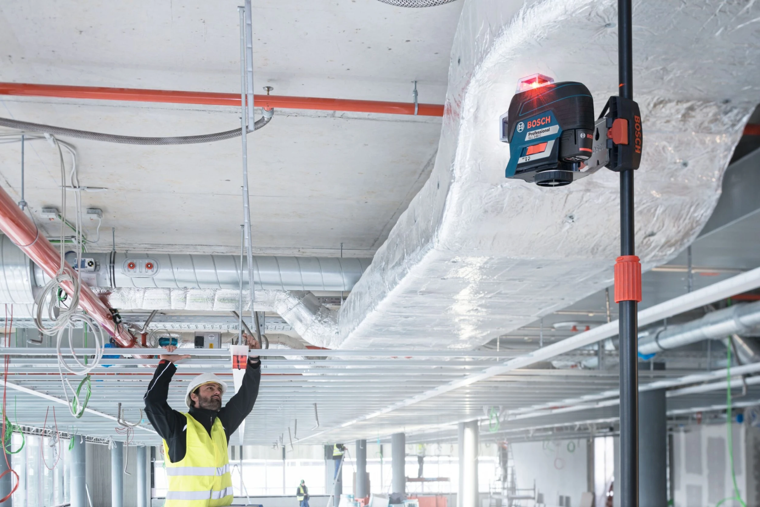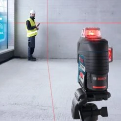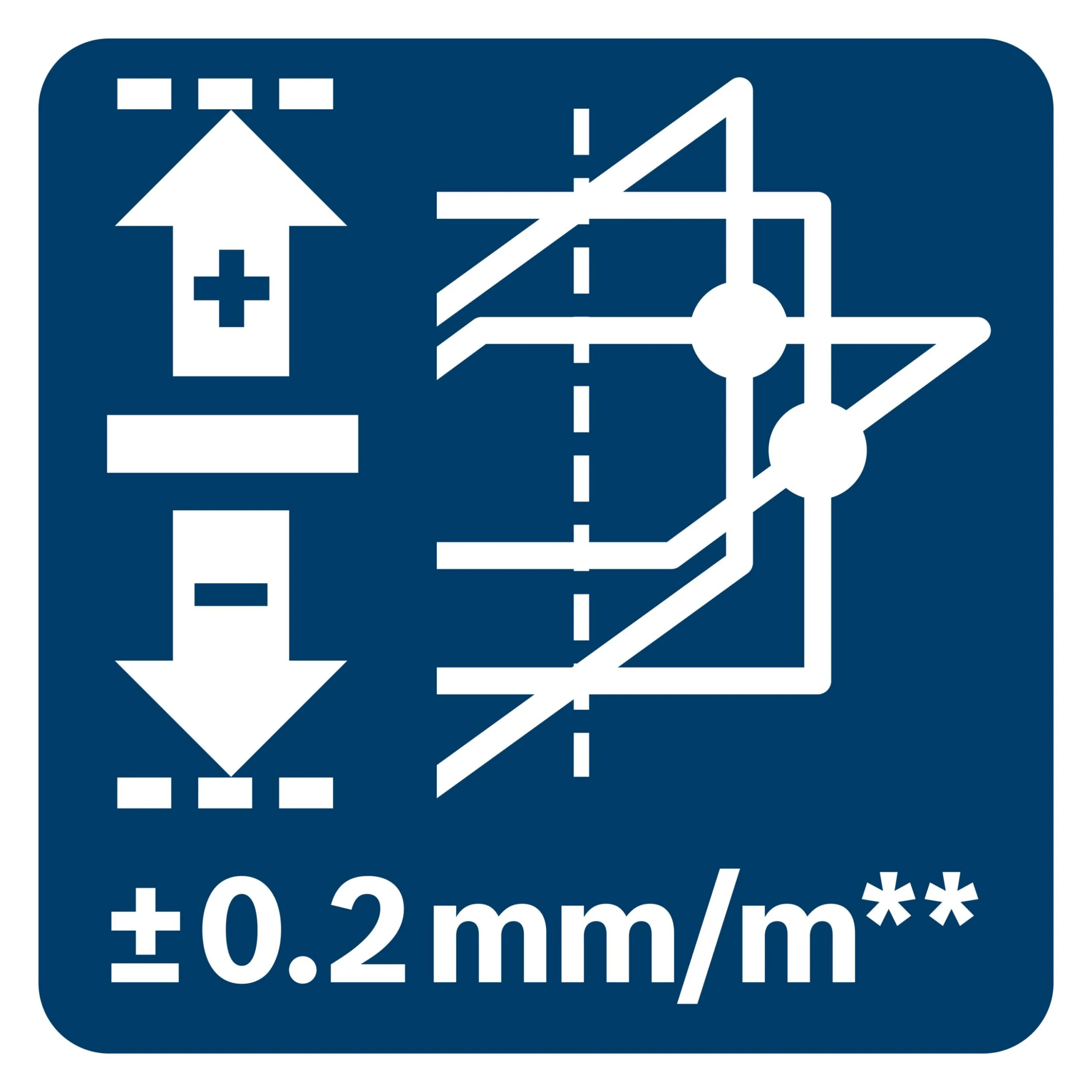 Produktbeschreibung:Linienlaser GLL 3-80 C, Der Linienlaser GLL 3-80 C Professional wird einfach angeschlossen und sorgt über die Projektion von 3 x 360°-Linien für exzellente Sichtbarkeit. Dank innovativer CAL Guard-Überwachung und Bluetooth®-Verbindung zur Smartphone-App sind der ferngesteuerte Einsatz, die kontaktlose Justierung sowie hohe Präzision möglich. Leistungsstarke Dioden garantieren starke Sichtbarkeit, während dank 3 x 360°-Linien für die gleichzeitige Durchführung von horizontalen und vertikalen Nivellierarbeiten und somit für hohe Arbeitseffizienz gesorgt wird. Dieser Linienlaser wurde für den Bau von Böden, die Montage von Fenstern, das Anbringen von Regalen, das Verlegen von Abflussrohren, den Rohbau für Trockenbauwände und das Verlegen von Fliesen entwickelt. Dank Dual Power Source-Technologie des GLL 3-80 C Professional ist ein Betrieb sowohl mit 12-V-Li-Ion-Akku als auch mit Standard-Alkalinebatterien möglich, ein Plus an Flexibilität. Das Gerät ist in der Lage, sich auf nicht planaren Oberflächen in weniger als 4 Sekunden mit einer exzellenten Genauigkeit von ± 0,2 mm/m*/** um bis zu +/- 4° selbst zu nivellieren und verfügt bei Verwendung des optionalen Empfängers LR 6 oder LR 7 Professional über eine Reichweite von bis zu 120 m. Dieser Linienlaser ist kompakt, einfach zu bedienen und extrem robust. Technische Daten:Laserdiode Linie: 630 – 650 nm, < 10mWBetriebstemperatur, von -10 °CBetriebstemperatur, bis zu 40 °CLagertemperatur, von -20 °CLagertemperatur, bis zu 70 °CLaserklasse 2Arbeitsbereich, Vorzeichen bis zuArbeitsbereich, Wert 30 mArbeitsbereich bis zu 30 mArbeitsbereich mit Empfänger, Vorzeichen bis zuArbeitsbereich mit Empfänger, Wert 120 mNivelliergenauigkeit +/- 0,2 mm/m*/** (*für die vier horizontalen Schnittpunkte; **plus nutzungsbedingte Abweichung)Selbstnivellierbereich ± 4°Nivellierzeit 4 sStaub- und Spritzwasserschutz IP 54*** (*** ausgenommen Li-Ionen-Akku und Batterieadapter AA1)Stromversorgung 12 V-Li-Ionen-AkkuBetriebsdauer, max. 8 Std. (Li Ion) und 6 Std. (4 x AA) in 3-Linien-ModusStativ-Gewinde 1/4", 5/8"Gewicht, ca. 0,9 kgFarbe Laserlinie rotProjektion 3 x 360° LinieKompatible Laser-Empfänger LR 6 + 7Betriebstemperatur -10 – 40 °CLagertemperatur -20 – 70 °CArbeitsbereich mit Empfänger bis zu 120 mGewicht (inkl. Verpackung) 2.564 kgLänge (inkl. Verpackung) 0.442 mHöhe (inkl. Verpackung) 0.155 mBreite (inkl. Verpackung) 0.36 m Lieferumfang:1x Bosch Linienlaser GLL 3-80 C1x L-BOXX 136 (1 600 A01 2G0)1x Universalhalterung BM 1 Professional (0 601 015 A01)1x Laserzieltafel1x Tasche1x Akku GBA 12V 2.0Ah (1 600 Z00 02X)1x Halterung für Laserempfänger LR 6/7 (1 608 M00 C1L)1x Laser-Empfänger LR 7 Professional (0 601 069 J00)1x Schnellladegerät GAL 12V-40 Professional (1 600 A01 9R3)