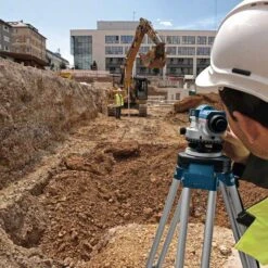 Produkteigenschaften: Robust und zuverlässig – Optimal geeignet für den Außenbereich Ideal für den Außeneinsatz durch ein robustes Gehäuse mit Staub- und Spritzwasserschutz (IP 54) Lichtstarkes Objektiv für ein scharfes Bild des Ziels Sicherer Transport durch Sperrvorrichtung für den Kompensator Zielkollimator zur Grobausrichtung Pentaprisma für gute Ablesbarkeit der Dosenlibelle Aufrechtes Bild Großer Fokussierknopf für einfaches Ausrichten Lichtstarkes Objektiv für ein scharfes Bild des Ziels (Messlatte) Endlose Gon-/Winkeleinstellung über Rutschkupplung Technische Daten: Maßeinheit 360 Grad Vergrößerung 32 x Nivelliergenauigkeit 1 mm auf 30 m Arbeitsbereich 120 m Staub- und Spritzwasserschutz IP 54 Stativ-Gewinde 5/8" Betriebstemperatur -10 – 50°C Lagertemperatur -20 – 70°C Gewicht, ca. 1,5 kg Lieferumfang: 1x Bosch Optisches Nivelliergerät GOL 32 D Professional 1x Einstelldorn 1x Innensechskantschlüssel 1x Transportkoffer (1 600 A00 0LF) 1x Linsenschutz 1x Senklot