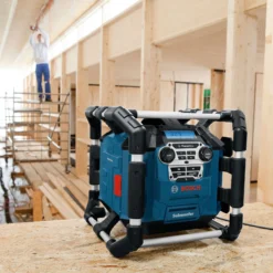 Produktbeschreibung:Radio GPB 18V-5 CDas GPB 18V-5 C Professional ist das robuste Radio für vollen Sound und Musik auf jeder Baustelle. Es ist mit zahlreichen Quellen wie Bluetooth®, FM und AUX kompatibel und bietet die erforderliche Flexibilität, um jede Baustelle mit Rocksongs, Beats und mehr zu versorgen. Äußerst robust: Das GPB 18V-5 C Professional verfügt über einen schützenden Überrollkäfig und wurde für den Einsatz bei rauen Baustellenbedingungen konzipiert. Dynamisch und kraftvoll zugleich: Der beeindruckende Klang dieses Radios kommt aus vier Lautsprechern mit einer Gesamtausgangsleistung von 20 Watt und einem integriertem Subwoofer (20 W) für eine starke Basswiedergabe. Dieses Gerät ist ideal zum Abspielen von Radioprogrammen oder Musik über Bluetooth® geeignet. Das Gerät ist mit allen Bosch Professional 18-Volt-Akkus kompatibel. Das GPB 18V-5 C Professional kann mit einem 18-Volt-Akku oder mit Netzstrom betrieben werden und verfügt zusätzlich über zwei Ausgänge zur Stromversorgung von Werkzeugen sowie USB-Anschluss für eine Schnellaufladung mit bis zu 2,1 A. Technische Daten:Eingangsspannung(en) Akku 18 VEingangsspannung(en) Netz 100 – 240 VRadiofrequenzbereich FM 87,5 – 108 MHzSpeicherplätze FM 4Gewicht (inkl. Verpackung) 9.53 kgLänge (inkl. Verpackung) 0.375 mHöhe (inkl. Verpackung) 0.36 mBreite (inkl. Verpackung) 0.365 m Lieferumfang:1x Bosch Radio GPB 18V-5 C (ohne Akku, ohne Lader)1x Aux-Kabel2x 1,5 V LR6-Batterie (AA)