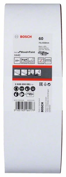 Bosch Schleifband-Set X440 Best For Wood And Paint, 10-teilig, 75 X 533 Mm, 60 (2 608 606 081)