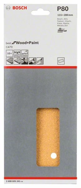 Bosch Schleifblatt C470, 115 X 280 Mm, 80, 14 Löcher, Gespannt, 10er-Pack (2 608 605 241)