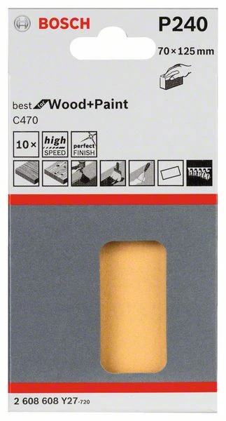 Bosch Schleifblatt C470, 70 X 125 Mm, 240, Ungelocht, 10er-Pack (2 608 608 Y27)