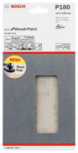 Bosch Schleifblatt M480 Net, Best For Wood And Paint, 115 X 230 Mm, 180, 10er-Pack (2 608 621 265)