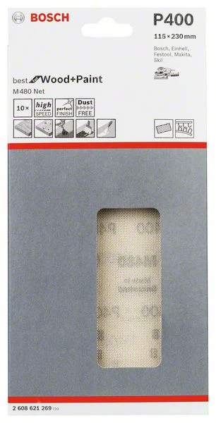 Bosch Schleifblatt M480 Net, Best For Wood And Paint, 115 X 230 Mm, 400, 10er-Pack (2 608 621 269)