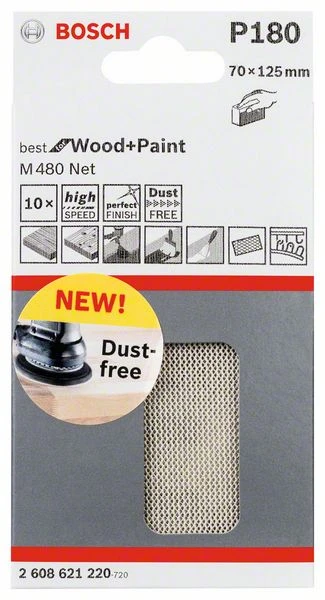 Bosch Schleifblatt M480 Net, Best For Wood And Paint, 70 X 125 Mm, 180, 10er-Pack (2 608 621 220)