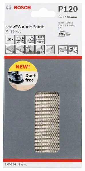 Bosch Schleifblatt M480 Net, Best For Wood And Paint, 93 X 186 Mm, 120, 10er-Pack (2 608 621 236)