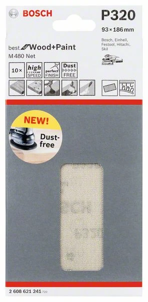 Bosch Schleifblatt M480 Net, Best For Wood And Paint, 93 X 186 Mm, 320, 10er-Pack (2 608 621 241)