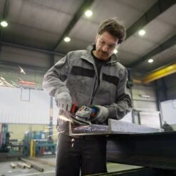 Produkteigenschaften:Winkelschleifer GWS 17-125 SBDer GWS 17-125 SB Professional mit Drehzahlvorwahl und intelligentem Bremssystem, das einen schnellen Scheibenstillstand bei Werkzeugabschaltung ermöglichtBesserer Staubschutz durch Lüftungsschlitze an der Werkzeugrückseite und ein sehr kleiner Griffumfang führen zu höherer Leistung und maximaler ProduktivitätDrop Control, KickBack Control, Wiederanlaufschutz und Seitengriff mit Vibration Control sorgen für hohen AnwenderschutzDer GWS 17-125 SB Professional ist perfekt zum Schleifen von Metall oder Schweißnähten sowie zum Trennen von Metall, Beton, Ziegel und FliesenEr ist kompatibel mit den Bosch Staubabsaugsystemen GDE 125 EA-T Professional und GDE 115 / 125 FC-T ProfessionalWeitere Merkmale sind Drehzahlvorwahl, eine konstante Drehzahl, Sanftanlauf und ÜberlastschutzTechnische Daten:Nenneingangsleistung 1.700 WLeerlaufdrehzahl* 2.800 – 11.500 min-1Schleifspindelgewinde M14Haupthandgriff StabhandgriffScheiben-Ø 125 mmBohrung, Ø 22,23 mmGewicht* 2,3 kgSchalter ArretierschalterSpannung, elektrisch 230 VSpannungsbereich 220 – 240 VSchwingungsgesamtwerte (Oberflächenschleifen (Schruppen))Schwingungsemissionswert ah 4,6 m/s²Unsicherheit K 1,5 m/s²Schwingungsgesamtwerte (Schleifen mit Schleifblatt)Schwingungsemissionswert ah 3,2 m/s²Unsicherheit K 1,5 m/s²Geräusch-/VibrationsinformationSchalldruckpegel 95 dB(A)Schallleistungspegel 103 dB(A)Unsicherheit K 3 dBLieferumfang:1x Bosch Winkelschleifer GWS 17-125 SB1x Zusatzhandgriff Vibration Control (2 608 900 000)1x Schutzhaube (1 605 510 365)1x Anklippbare Trennschutzhaube aus Metall (2 608 000 756)1x Zweilochschlüssel (1 607 950 043)1x Aufnahmeflansch (1 605 703 099)1x Spannmutter (1 603 340 040)1x Staubfilter (2 607 432 053)1x Schnellspannmutter SDS (1 603 340 031)